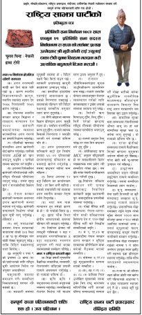 धरान । प्रतिनिधि सभा सदस्य निर्वाचन २०८२ का लागि राष्ट्रिय साझा पार्टी (रा.सा.पा.) ले आफ्नो विस्तृत प्रतिबद्धतापत्र सार्वजनिक गरेको छ । धरान केन्द्रित स्थानीय समस्या समाधानदेखि राष्ट्रिय स्तरका नीतिगत सुधारसम्म समेटिएको उक्त दस्तावेज सार्वजनिक गर्दै पार्टीका तर्फबाट प्रत्यक्ष उम्मेदवार भूपी कोयी राईले ढाका टोपी चुनाव चिन्हमा मतदान गरी अत्यधिक बहुमतले विजय गराउन मतदातासँग अपिल गर्नुभएको छ । उम्मेदवार राईले भन्नुभयो,...
