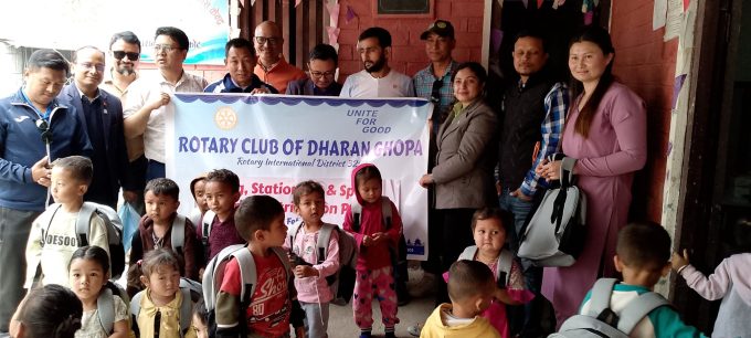 धरान । रोटरी क्लव अफ धरान घोपाले धरान–१५ स्थित सिलाम साक्मा बालविकास केन्द्र र धरान–२० देवीगाउँको जनजागरण बाल विकास केन्द्रका २५/२५ जना बालबालिकालाई विद्यालय प्रयोजनका लागि आवश्यक झोला तथा स्टेशनरी सामग्री वितरण गरेको छ ।