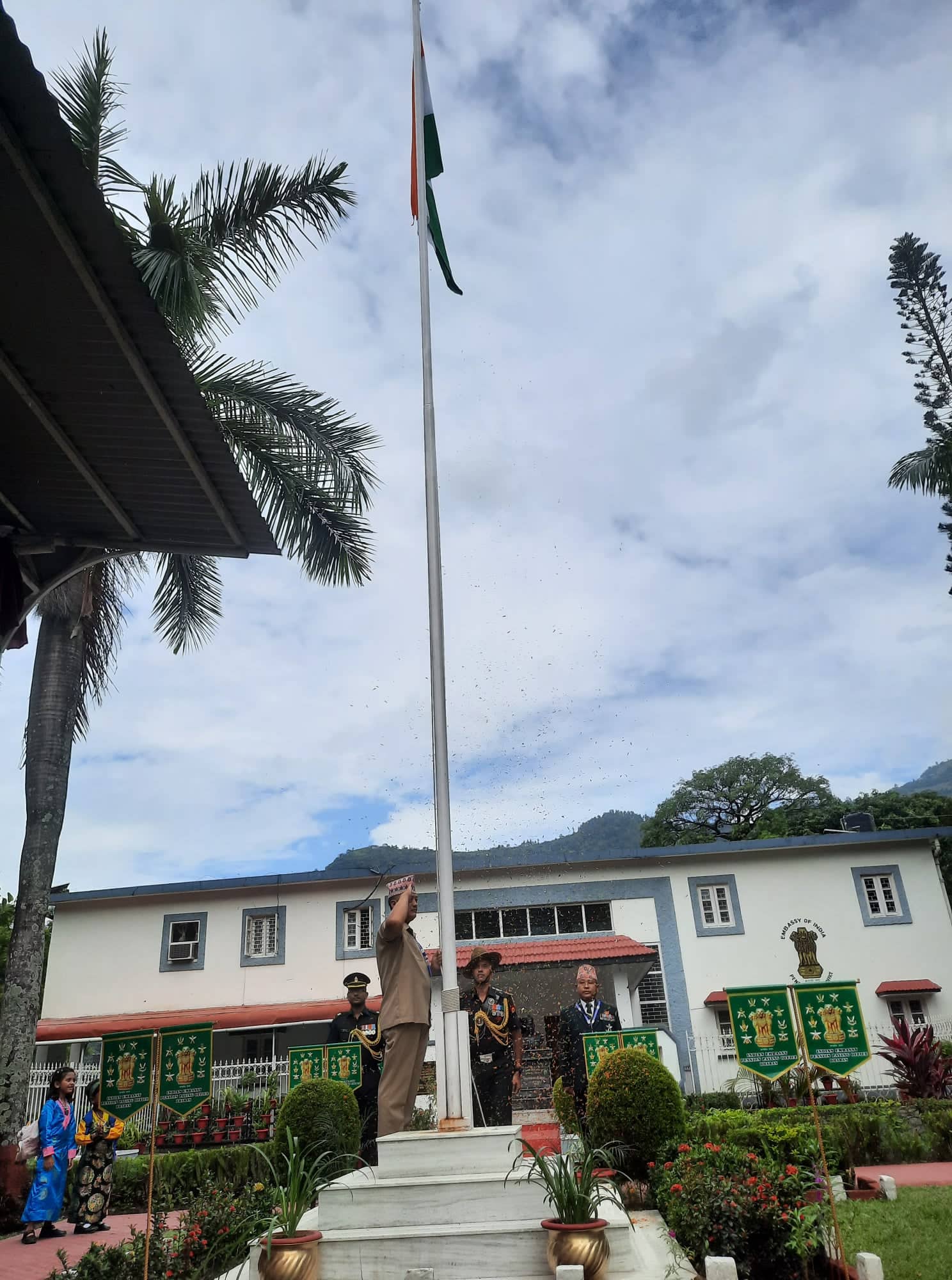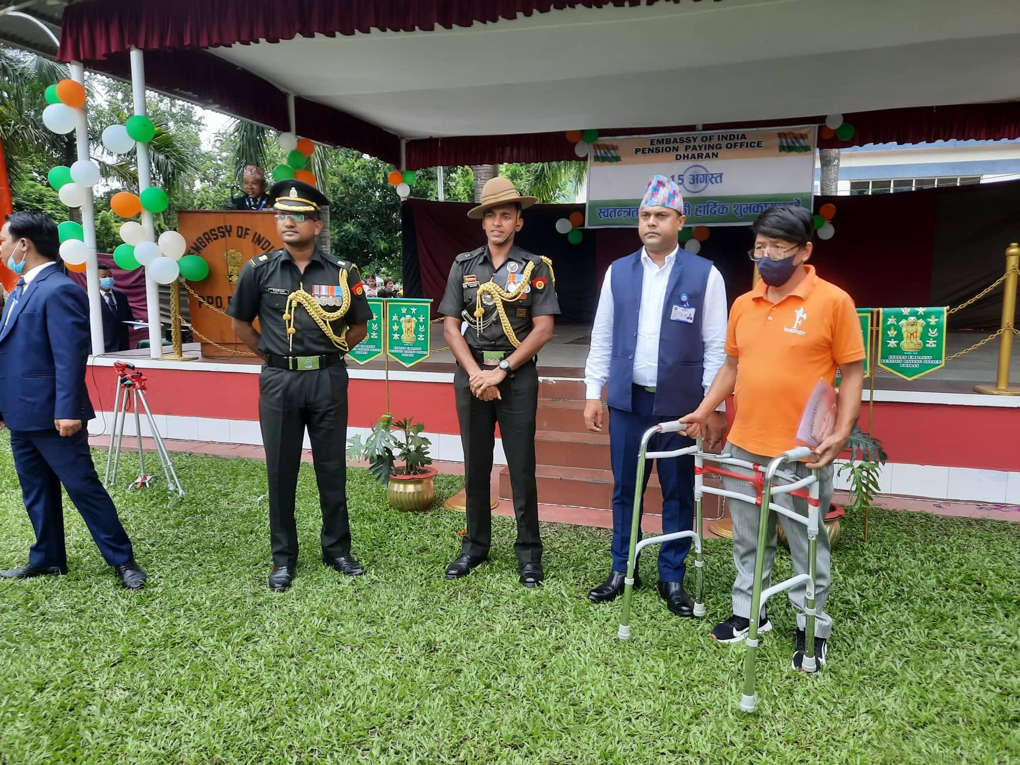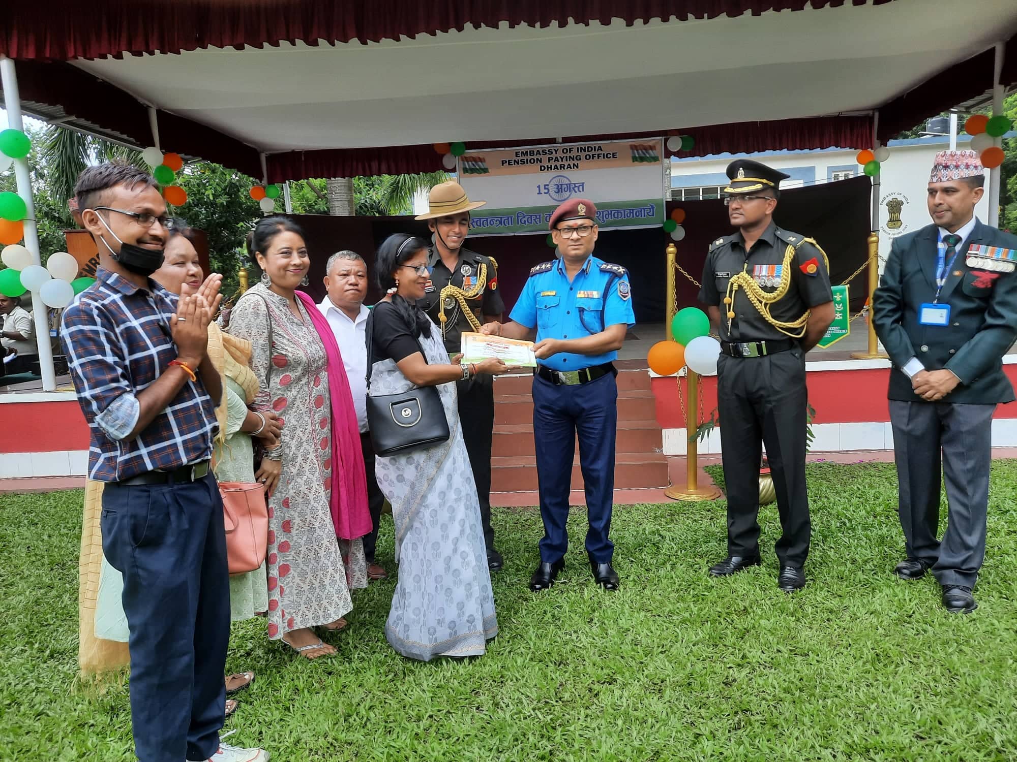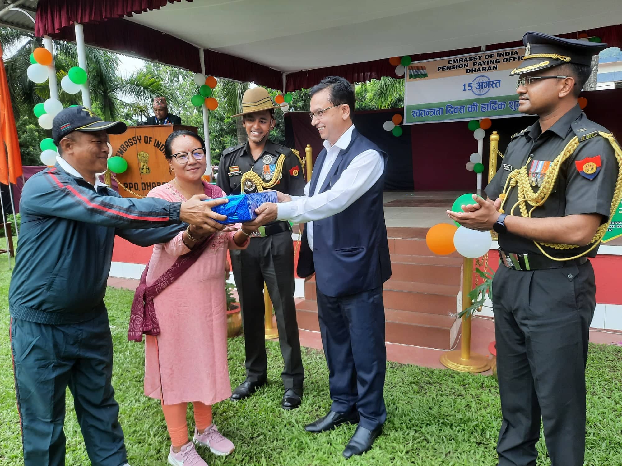 धरान । नेपालको अत्यन्तै निकटको छिमेकी मुलुक भारतको ७६ औं स्वतन्त्रता दिवस भारतीय राजदुतावास पेन्सन वितरण कार्यालय धरानमा भव्य रुपमा सम्पन्न भएको छ । कार्यालयका प्रभारी अधिकारी मेजर भरत कनौजियाद्वारा भारतको राष्ट्रगानसँगै झण्डोत्तलन पश्चात वीर शहीदहरुको स्मारकमा श्रद्धाञ्जली स्वरुप पुष्पाहार अर्पण गर्नुभएको थियो ।