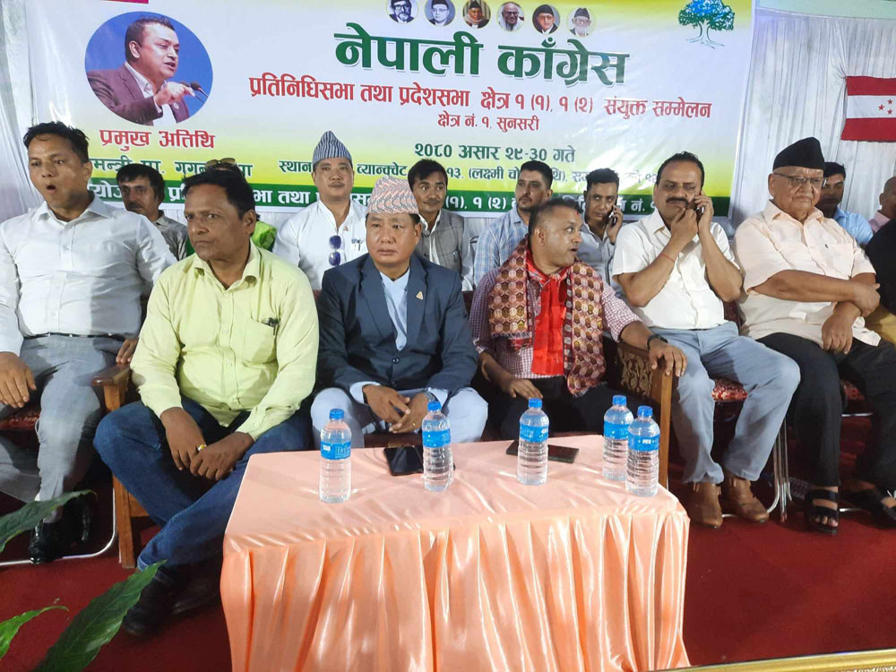नेपाली काँग्रेस आगामी २०८४ को आम निर्वाचनमा माटोमा मिल्छ भन्ने आफूले सुनेको भन्दै सांसद समेत रहनु भएका थापाले काँग्रेस कमजोर नहुने ठोकुवा गर्नुभयो । पार्टी सत्तामा भए पनि जन अपेक्षा बमोजिम काम गर्न नसक्दा कार्यकर्तामा नैराश्यता छाएको स्वीकार्दै अबका दिनमा जनताको मन जित्ने गरी सरकारले काम गर्नुपर्ने हुन्छ । उहाँले भन्नुभयो ०८४ को निर्वाचनमा काँग्रेसले वहुमत ल्याएर सरकार बनाउँछ, यसमा कसैले द्विविधा नराखे हुन्छ । उहाँले भन्नुभयो विगतमा पनि काँग्रेसले धेरै सिट जित्न सक्दैन भन्ने हल्ला पिटाइयो तर निर्वाचनबाट काँग्रेस सबैभन्दा ठूलो राजनैतिक दलकै हैसियतमा स्थापित भयो । कुनै दल आउँदैमा काँग्रेस कमजोर नहुने उहाँको भनाई थियो । विगतको निर्वाचनले नेपाली काँग्रेसलाई अत्याधिक स्थानका स्थानीय निकायको प्रमुख र उपप्रमुखमा निर्वाचत गराएको दृष्टान्त दिँदै महामन्त्री थापाले वर्तमान अवस्थामा ७ प्रदेशमध्ये ४ वटामा काँग्रेसको मुख्यमन्त्री छन् । यद्यपि पार्टी सत्तामा भएको अवस्थामा आम कार्यकर्तामा निराशा छाएको उहाँले बारम्बार दोहो¥याउनुले वर्तमान सरकार गठनप्रति उहाँले असन्तुष्टि जाहेर गरेको प्रष्ट हुन्थ्यो ।महामन्त्री थापाले भन्नुभयो जनतालाई केन्द्रविन्दुमा राखेर सत्तामा छँदा शिक्षा, स्वास्थ्य, रोजगारका क्षेत्रमा देखिने गरी काम गर्न सके ०८४ को निर्वाचनमा काँग्रेसको जनलहरलाई कसैले रोक्न सक्दैन । उहाँले भन्नुभयो वर्तमान अवस्थामा पार्टीभित्रका केही उच्च पदस्थ नेताहरु भ्रष्टाचारको आरोपमा मुछिएका छन्, जेल गएका छन्, पार्टीभित्रैबाट कसैको गिराफ्तारीको माग उठिरहेको छ । तर यसले पार्टीलाई कुनै प्रभाव नपार्ने थापाको कथन थियो । उहाँले भन्नुभयो हामीले बारम्बार विधान अधिवेशनको माग गरेका छौं । विधान अधिवेशन भएमा पार्टीका भातृ संगठनहरु वर्तमान अवस्थामा झै नेतृत्वविहीन हुनुपर्दैन । नेपाली काँग्रेस सुनसरी क्षेत्र नं. १ का सभापति सुजेन्द्र तामाङको सभापतित्वमा सम्पन्न सम्मेलनले १४ बुँदे घोषणापत्र समेत पारित गरेको थियो । जसमा सुन्दर, समुन्नत, समृद्ध धरानका लागि शिक्षा, स्वास्थ्य, पर्यटन, व्यापारिक पूर्वाधार निर्माण गर्ने, रामधुनी नगरपालिकाको नगर विकासमा पहल गर्ने, धरानसँग सीमा जोडिएका नगरपालिकासँग सुमधुर सम्बन्ध स्थापित गर्ने, राज्यका स्रोत साधनमा समान पहुँच स्थापित गर्दै जातीय तथा वर्गीय विभेद, छुवाछुतको अन्त्य गर्ने लगायतका बुँदाहरु रहेका छन् ।