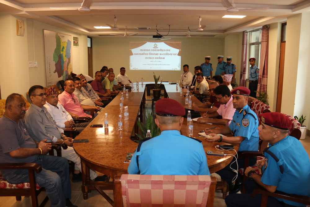 विराटनगर । कोशी प्रदेश प्रहरी प्रमुख प्रहरी नायव महानिरीक्षक राजेशनाथ बास्तोलाले सवारी दुर्घटना न्युनिकरण, सडक शुसाशन र सुरक्षा सम्बन्धी, यातायात ब्यबसायीहरुसंग छलफल तथा अन्तरक्रिया गर्नु भएको छ । कोशी प्रदेश प्रहरी कार्यालय बिराटनगरको सभाहलमा आइतबार सम्पन्न भएको उक्त कार्यक्रममा झापा, मोरङ र सुनसरी जिल्लाका बिभिन्न बस तथा ट्रक ब्यबसायीहरुका प्रमुख तथा प्रतिनिधीहरुको उपस्थिति रहेको थियो ।